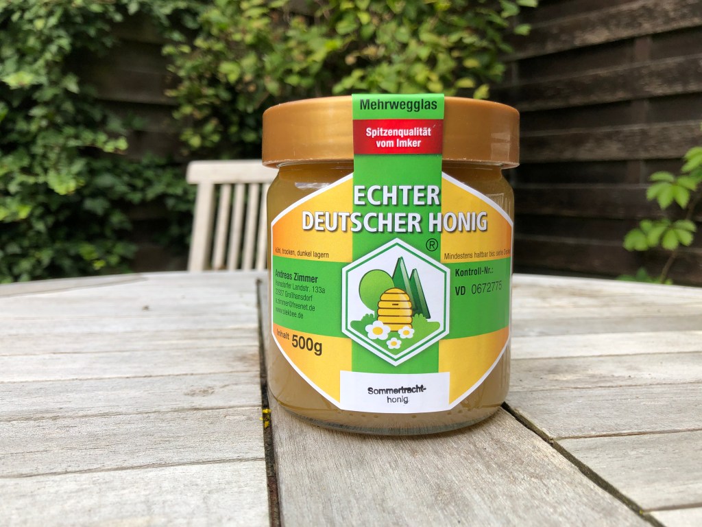 Mein Sommerhonig aus dem Jahr 2022 hat zum Beispiel einen Wassergehalt zwischen 14,5% und 15%. Gemäß den Bestimmungen des Deutschen Imkerbundes darf der Honig 18% Wassergehalt haben. Die Deutsche Honigverordnung erlaubt 20% Wassergehalt.