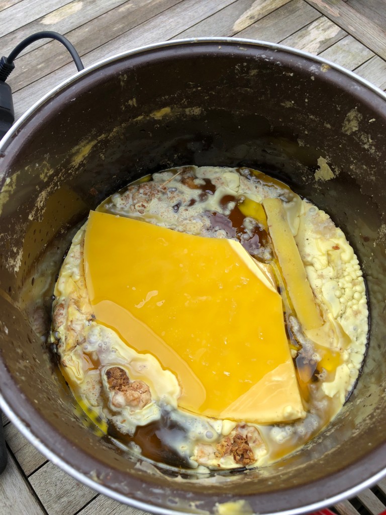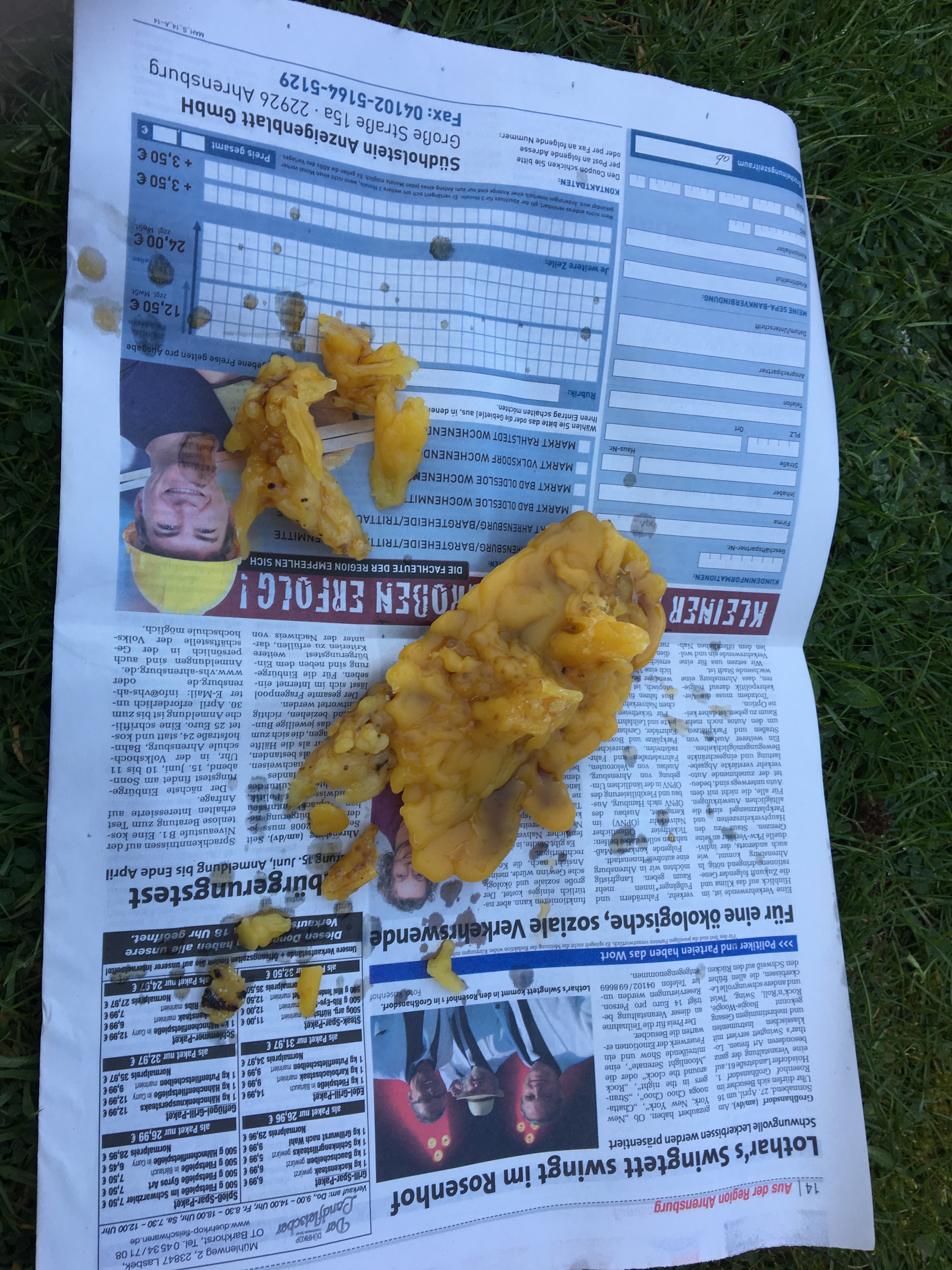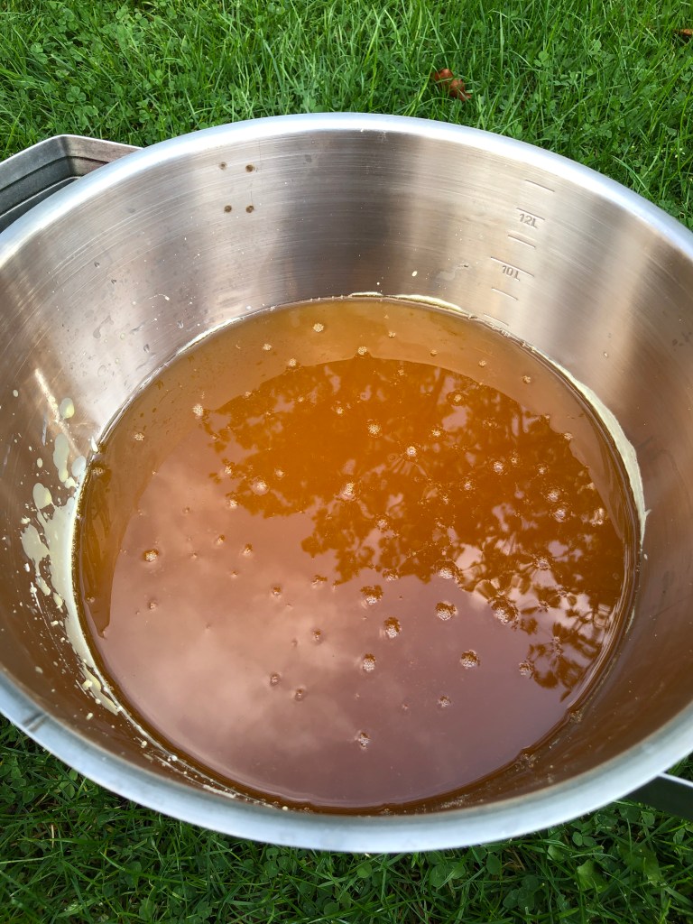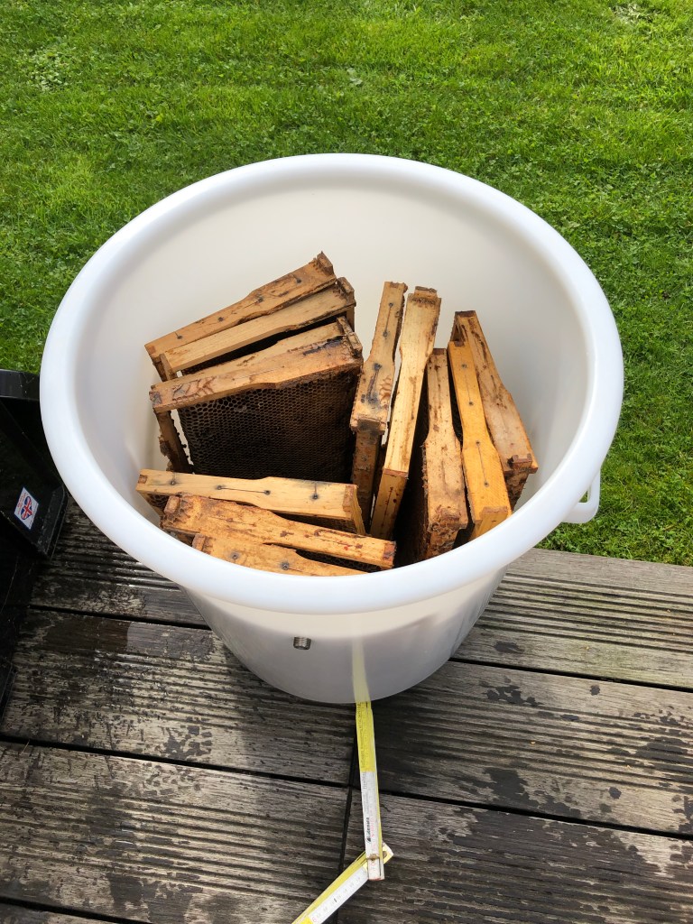 Winter is coming. Die Arbeiten an den Bienen sind für dieses Jahr weitgehend abgeschlossen und die Bienen für die Einwinterung vorbereitet. Die Völker sind, soweit notwendig, aufgefüttert und die Sommerbehandlung gegen die Varroamilbe ist durchgeführt. Bis auf die Winterbehandlung im Dezember ist ausser gelegentlichen Kontrollen nichts mehr an den Bienen zu tun. Der Imker kann sich anderen Arbeiten widmen. Ich habe begonnen das im laufe des Jahres gewonnene Wachs zu bearbeiten und noch nicht ausgeschmolzene alte Waben zu schmelzen. Vor einiger Zeit habe ich beschrieben, wie man mit Hilfe von Sonnenenergie alte Waben ausschmelzen kann. Das funktioniert jetzt leider nicht mehr. Wenn die Sonne denn mal scheint, steht sie zu tief und der Sonnenwachsschmelzer wird nicht mehr heiß genug. Jetzt kommt der Dampfwachsschmelzer zum Einsatz. Wasser wird in einem abgeschlossenem Behälter zum Kochen gebracht und der heiße Wasserdampf wird in ein Behälter mit den Waben geleitet. In dem Behälter wird es so heiß, dass das Wachs schmilzt und durch eine Öffnung im Boden des Behälters in ein Gefäss fließt. Der Vorteil an dem Dampfwachsschmelze ist, dass ich bis zu dreizehn Waben in einem Rutsch ausschmelzen kann.